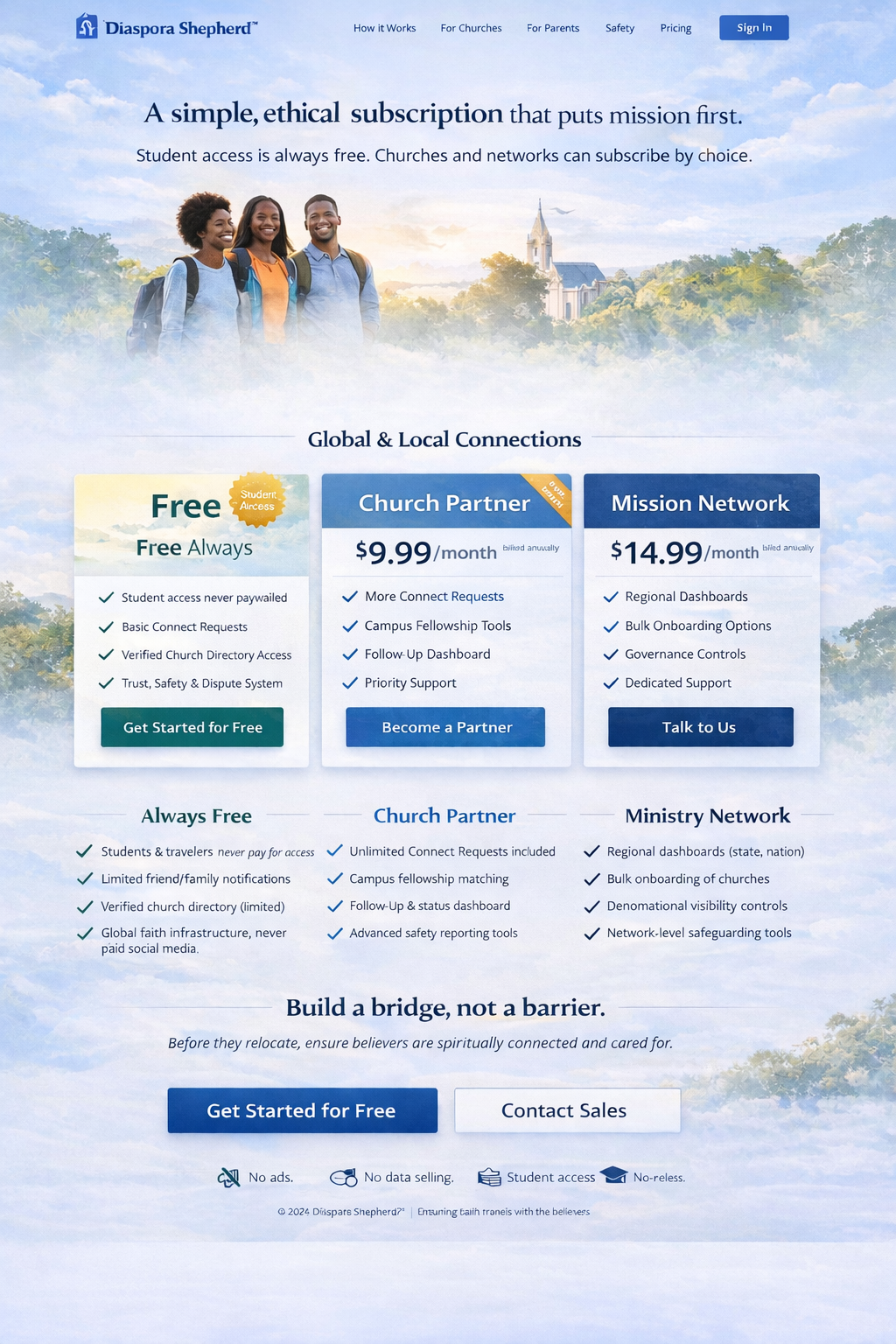 © 2025 Diaspora Shepherd™ · Ensuring faith travels with the believers